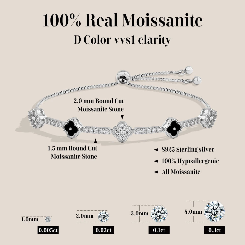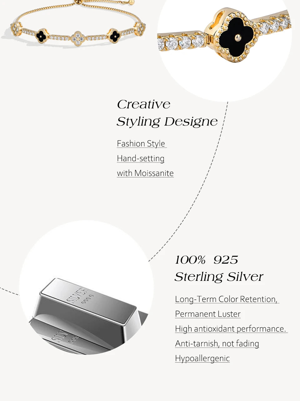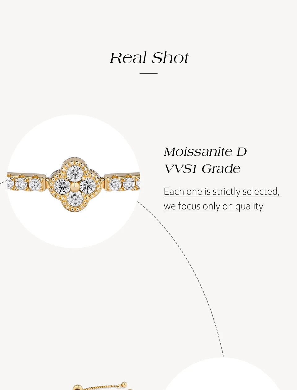 Prosperity by SP Flowers Design Moissanite Charm Bracelet For Women 925 Sterling Silver 18KGold Plated Tennis Luxury Chain Party Jewelry