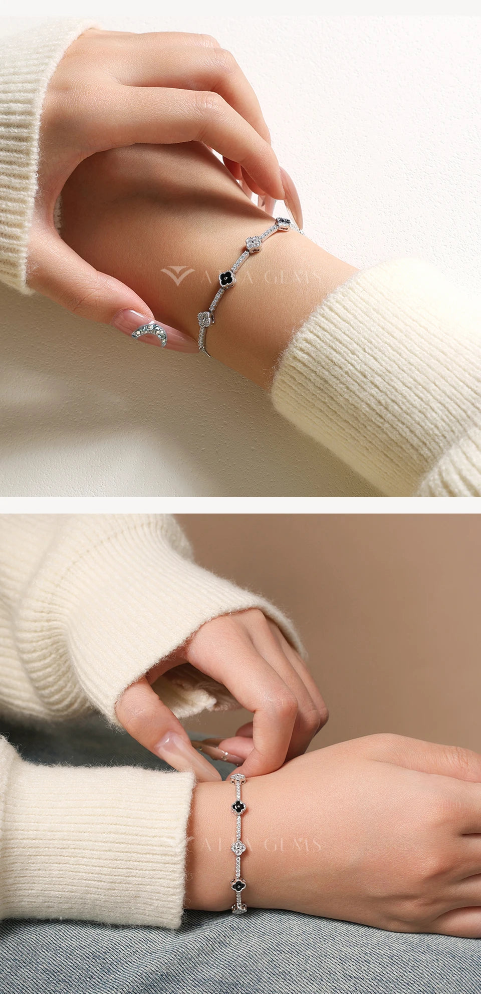 ATTAGEMS Luxury Moissanite Charm Bracelet For Women Flowers Design 925 Sterling Silver 18KGold Plated Tennis Chain Party Jewelry